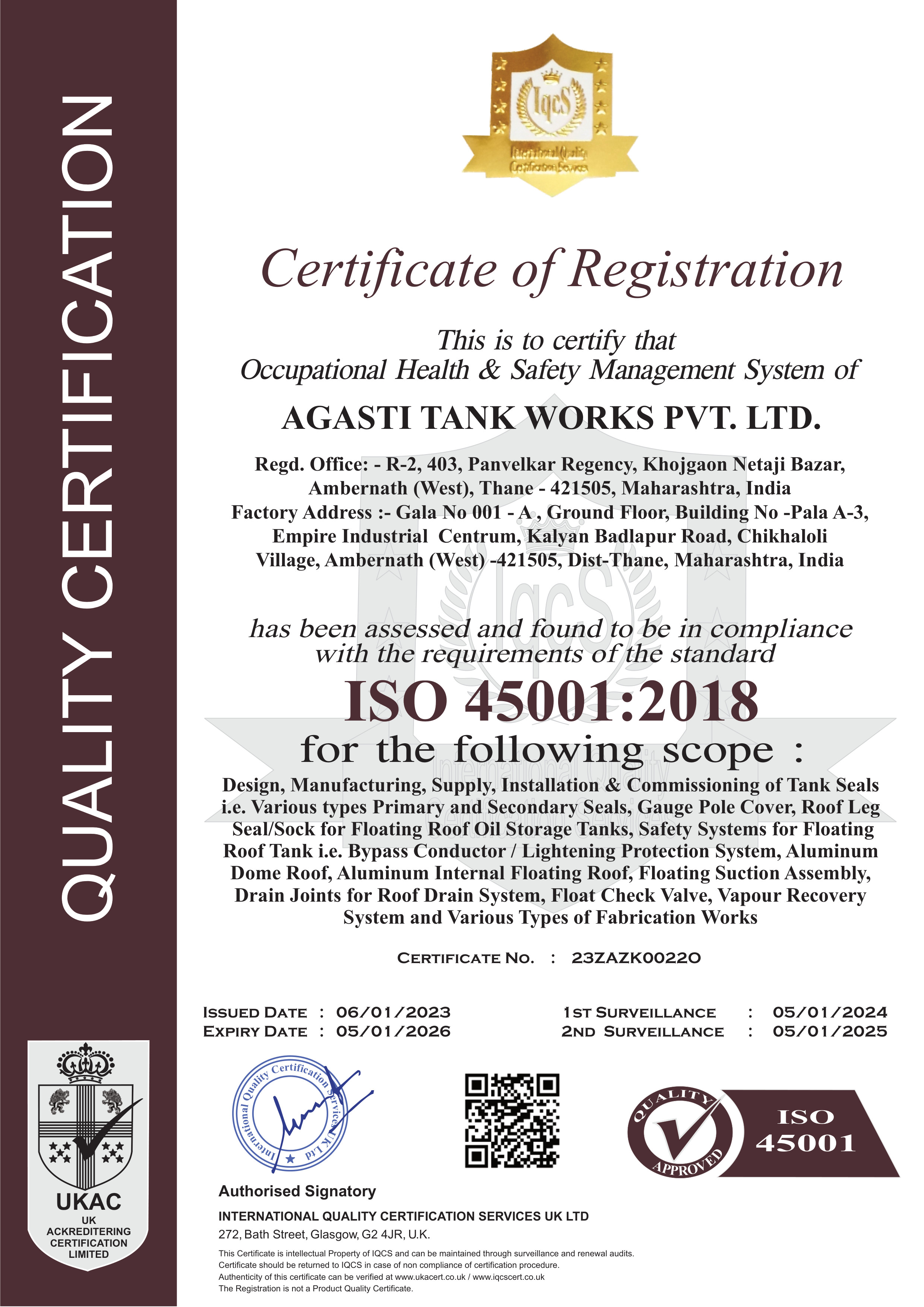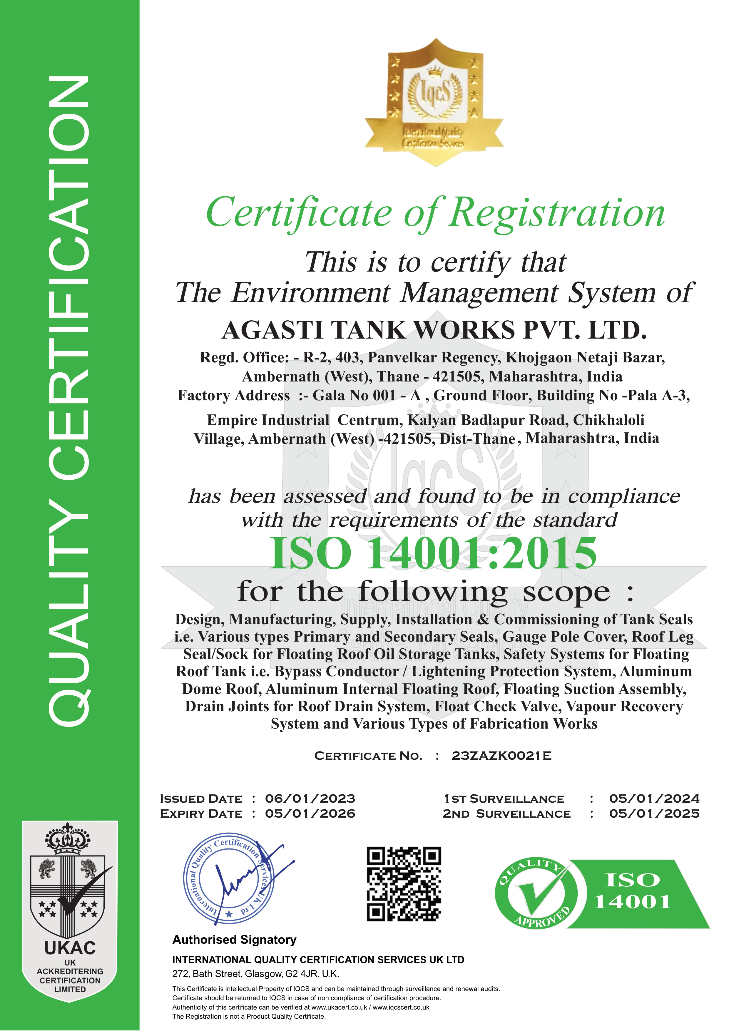 "At Agasti Tank Works Pvt Ltd, quality assurance is at the core of our operations. In every aspect of the design, engineering, manufacturing, installation, supervision, and inspection of vapour control and safety systems for floating roof oil storage tanks, we adhere to rigorous standards. Our commitment to excellence is reflected in the use of top-tier materials, cutting-edge technology, and skilled craftsmanship. We ensure that all systems are compliant with industry regulations and tailored to meet specific client needs, guaranteeing safety, reliability, and long-term performance in every project."