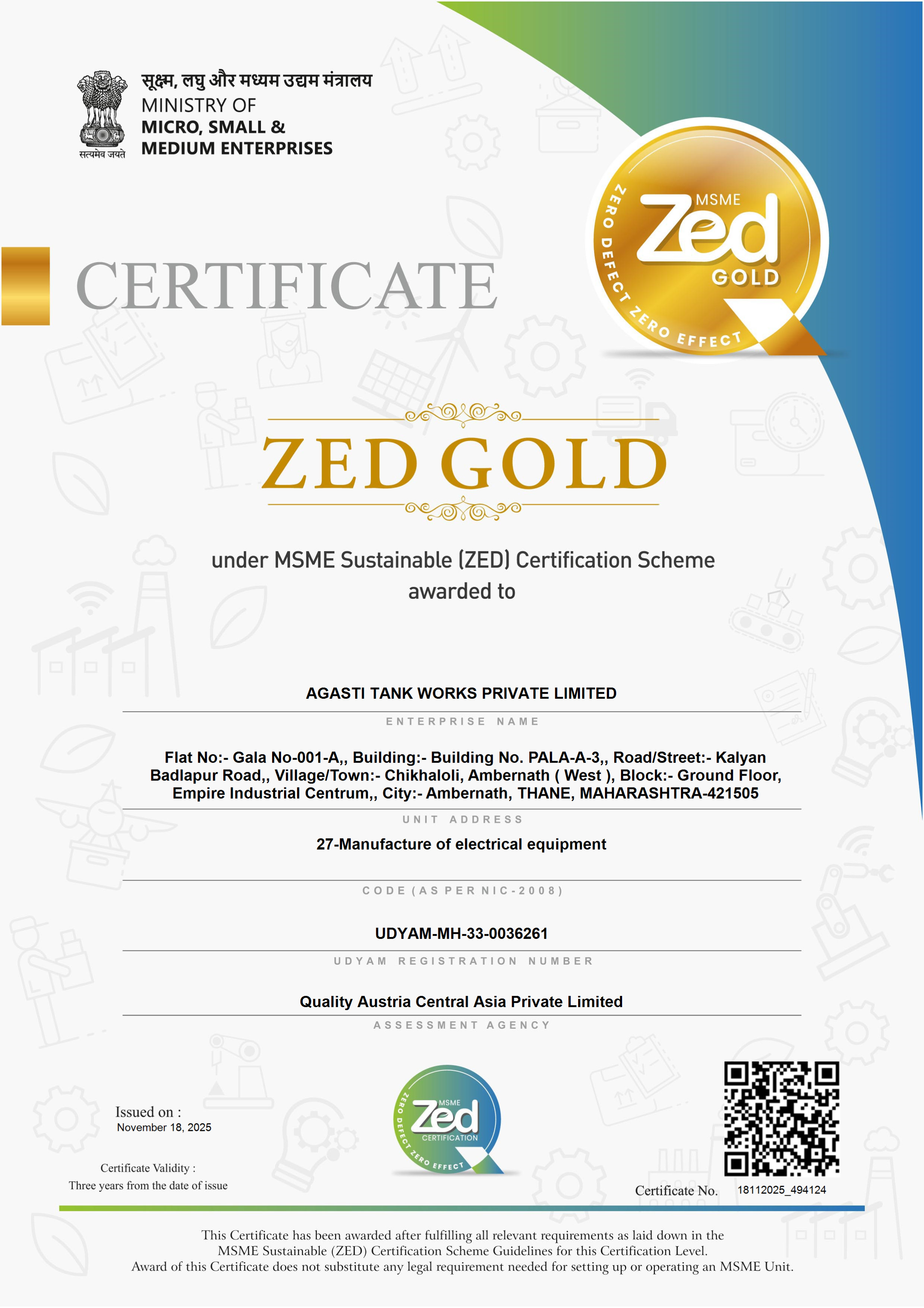 "Our mission at Agasti Tank Works Pvt Ltd is to deliver world-class vapour control and safety systems for floating roof oil storage tanks through superior design, engineering, manufacturing, installation, supervision, and inspection. We are committed to ensuring the highest level of safety, quality, and innovation in every project we undertake, while consistently exceeding customer expectations and contributing to a safer, more efficient oil storage industry."